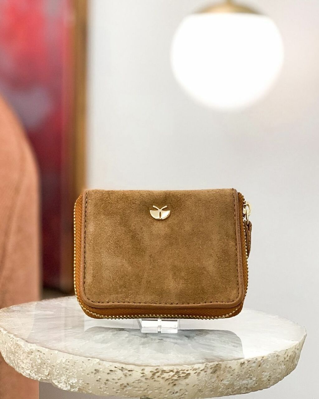 O modelo Porta-cartões Luiza Barcelos é prático, compacto e acomoda cartões com facilidade, além de combinar com bolsas diversas em variados tamanhos. O porta-cartões é produzido em camurça caramelo possui formato retangular, contorno em costura pesponto e logo da marca, abertura por zíper na parte superior, e espaço para cartões nas duas capas.