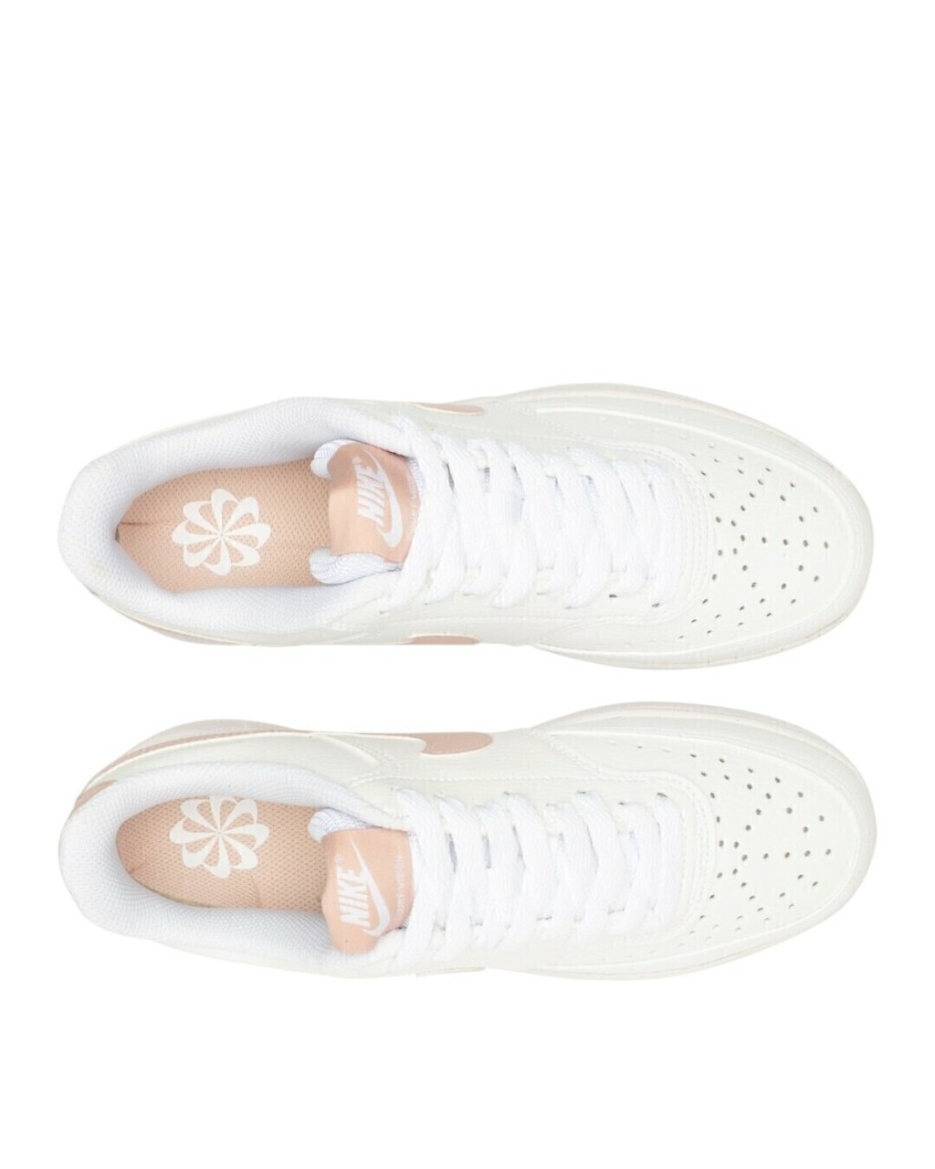 Tênis Nike Court Vision Lo Be é produzido em material sintético. A peça possui bico arredondado, logo da marca aplicado nas laterais em cor contrastante, tag da marca aplicada na lingueta, recorte posterior em cor contrastante com nome da marca aplicado, palmilha macia, entressola com superfície texturizada, perfuros na parte frontal, solado emborrachado, acabamento pespontado e ajuste superior por cadarços